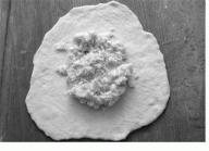 Farsz dzielimy na 6 części, układamy na placku i zamykamy , tak jak to pokazano na obrazku